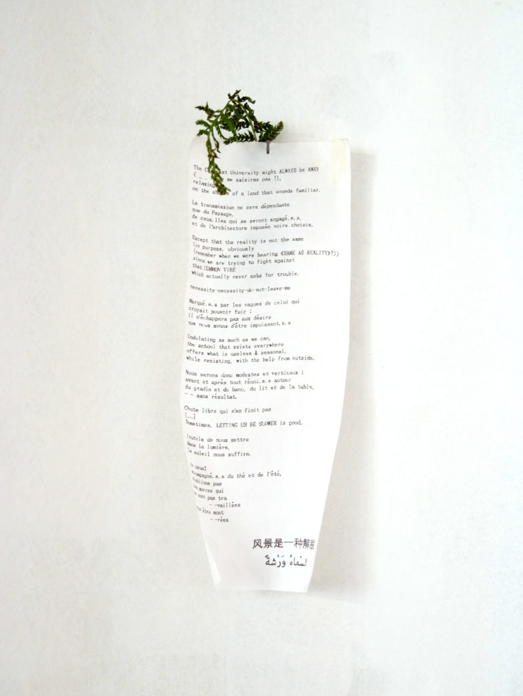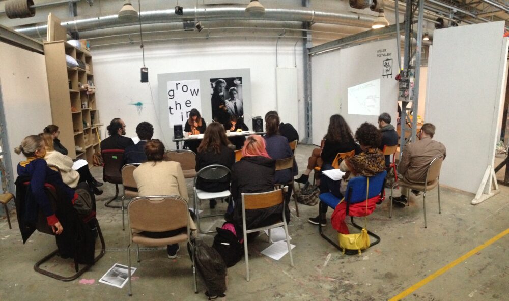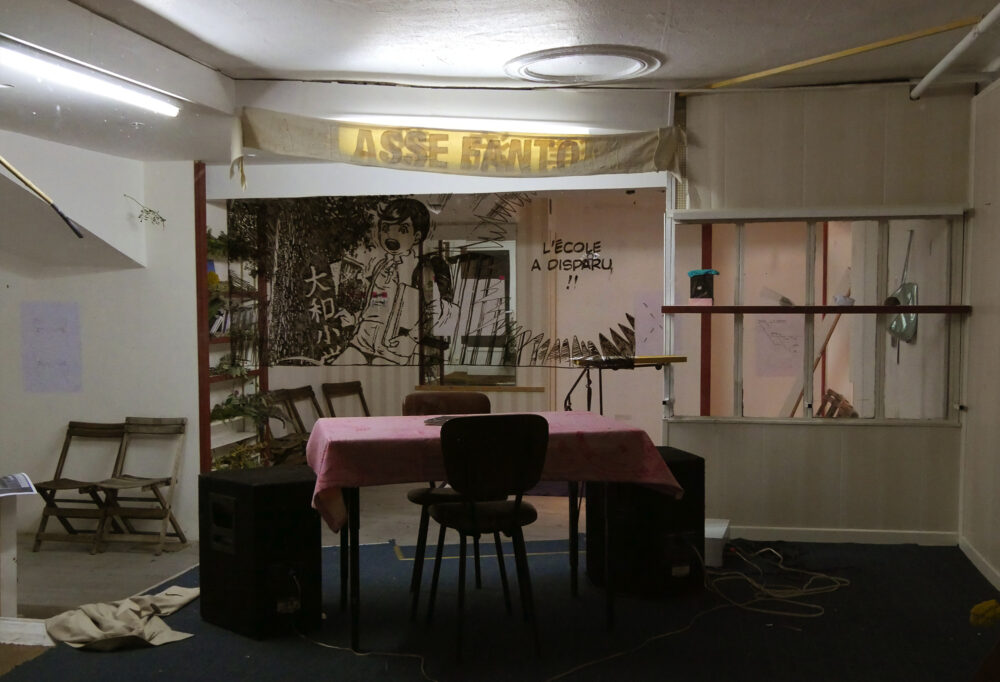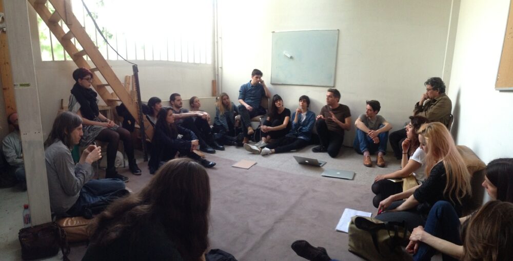 In 2015, a research group was established through monthly meetings, public conferences (Saisir l’école avant qu’elle ne s’évanouisse at Paris 8 University and the Cheap Talks at Villa Belleville), two preparatory workshops (Workshop-tranquille in Pornichet in Loire-Atlantique and L’école emportée in Treignac Projet in Corrèze) and a community-driven website.